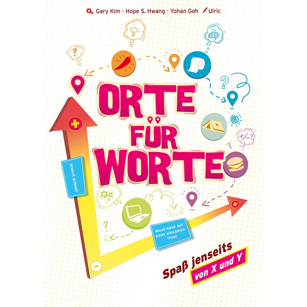 Im kompetitiven Partyspiel Orte für Worte versuchst du, Begriffe in einem verrückten Koordinatensystem am richtigen Ort zu platzieren, sodass deine Mitspieler diese erraten können. An den Achsen sind skurrile Kriterien, anhand derer du dein geheimes Wort einordnen musst. Auch das Referenzwort in der Mitte hilft dir dabei. Errate die Begriffe der anderen und gib selbst gute Hinweise, um die meisten Punkte einzuheimsen. Schätze die anderen gut ein und finde die richtigen Orte für deine Worte!300 verschiedene Begriffe und Achsenbeschriftungen sorgen für enorme Wiederspielbarkeit